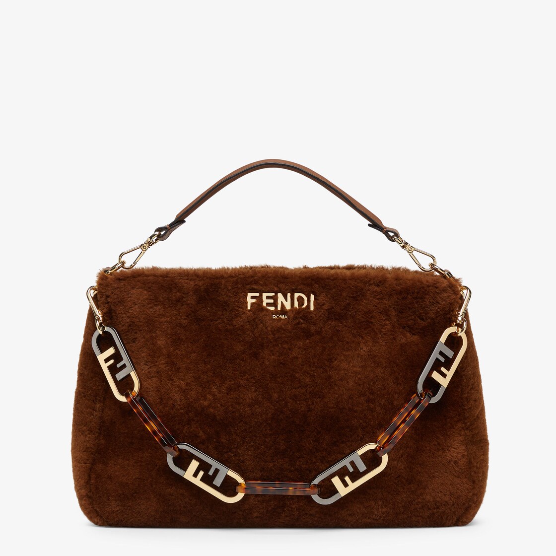 Fendi O Lock Zipper Brown Sheepskin Bag Fendi